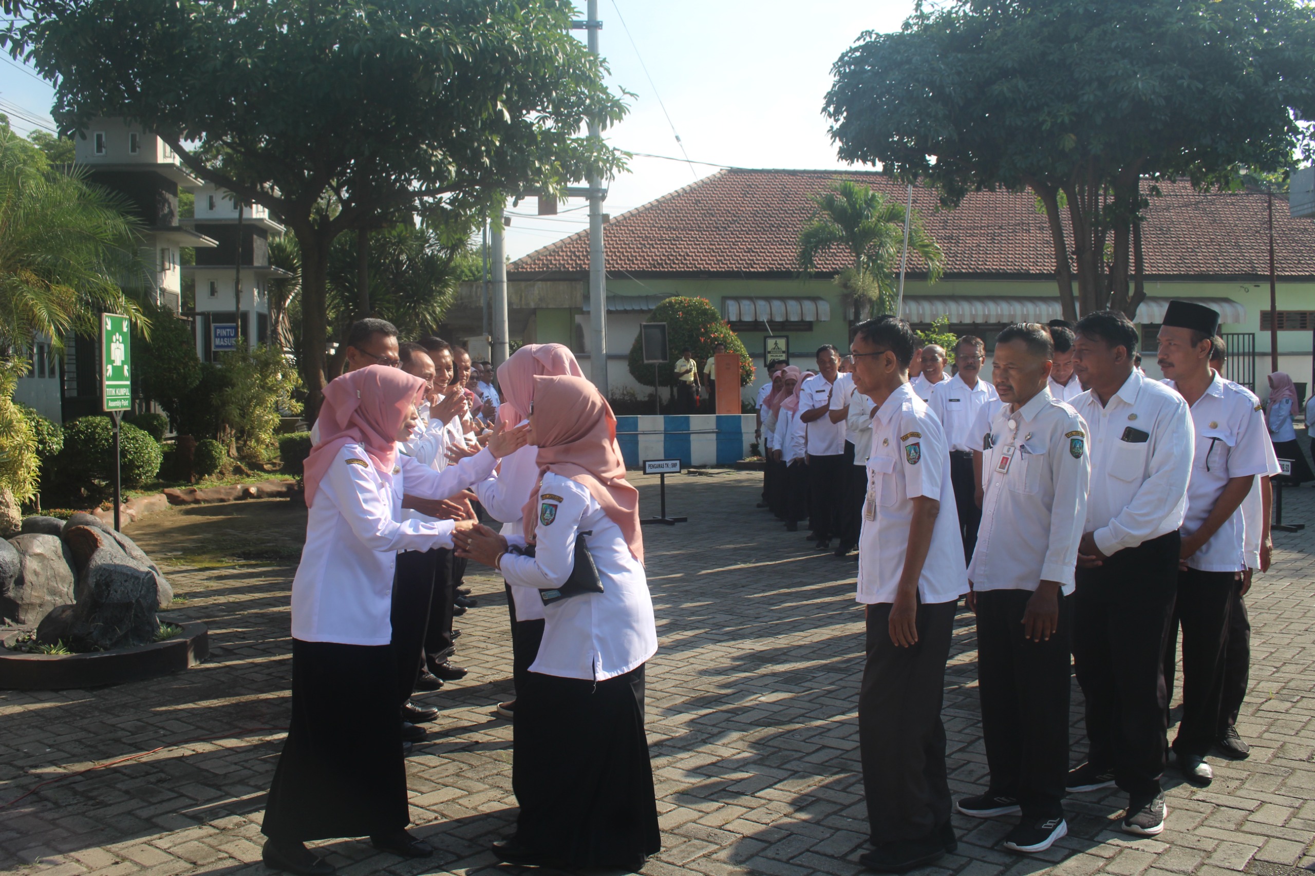 Setelah apel kerja dilaksanakan, dilanjutkan bersalaman antara Plh. Kepala Disdikbud Kabupaten Jombang yang didampingi Plh. Sekretaris Disdikbud Kabupaten Jombang dengan semua Pegawai Disdikbud Jombang, mulai Pelaksana, Sub Koordinator, Kepala Sub Bagian, Kepala Seksi, Kepala Bidang, Penilik PAUD dan PNF, Pengawas TK, SD sampai SMP. Setelah itu, dilanjutkan acara ramah tamah di Aula 1 Disdikbud Jombang. A’AM – DIKBUD