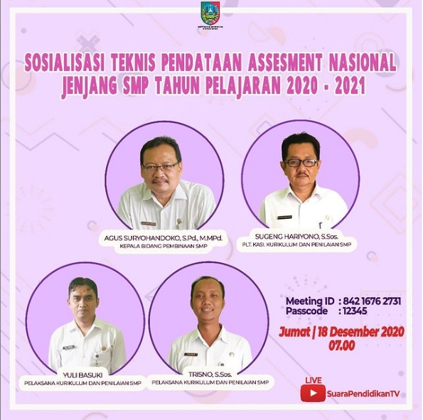 Adapun teknis pendataan AN disampaikan oleh Trisno dan Yuli Basuki, Pelaksana Seksi Kurikulum dan Penilaian SMP, yang diikuti oleh Kepala SMN Negeri dan Swasta beserta Operator Pendataan. AN ini diikuti oleh kelas 8 pada satuan pendidikan, yang mempunyai Nomor Pokok Sekolah Nasional (NPSN).