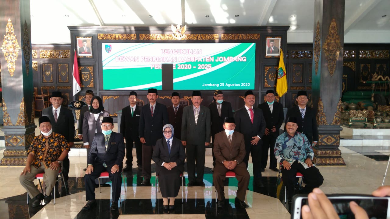 JOMBANGKAB.GO.ID, DISDIKBUD – Setelah melalui beberapa tahapan seleksi, akhirnya Bupati Jombang mengukuhkan 11 Anggota Dewan Pendidikan Baru Periode 2020 – 2025. Pengukuhan berlangsung di Pendopo Kabupaten Jombang pada hari Selasa sore (25/8). Surat Keputusan langsung dibacakan oleh Kepala Dinas Pendidikan dan Kebudayaan (Disdikbud) Kabupaten Jombang, Agus Purnomo.