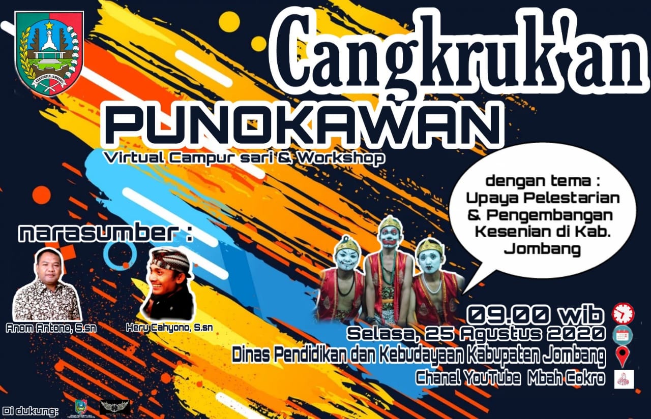 JOMBANGKAB.GO.ID, DISDIKBUD - Dinas Pendidikan dan Kebudayaan (Disdikbud) Kabupaten Jombang mempersembahkan Cangkruk’an Punokawan dengan tema “Upaya Pelestarian dan Pengembangan Kesenian di Kabupaten Jombang”. Acara ini diselenggarakan pada hari Selasa (25/8) siang di Lapangan Belakang Disdikbud Jombang.