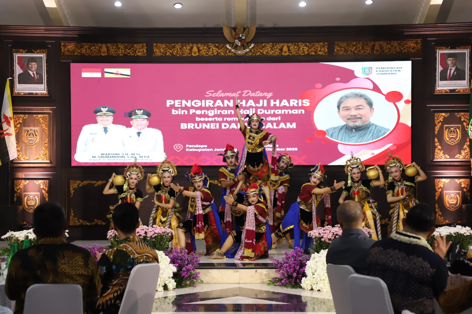 Pemerintah Kabupaten Jombang menerima kunjungan kehormatan Yang Mulia Pengiran Haji Haris bin Pengiran Haji Duraman dari Brunei Darussalam dalam acara Gathering Forum Tanggung Jawab Sosial dan Lingkungan (TJSL) Perusahaan Tahun 2025 serta Rencana Temu Investasi dengan Brunei Darussalam BIMP-EAGA Business Council, yang digelar di Pendopo Kabupaten Jombang, Selasa (7/9) malam.