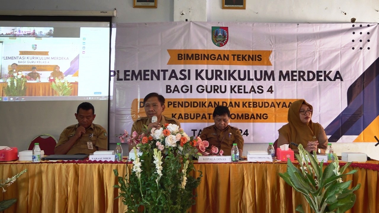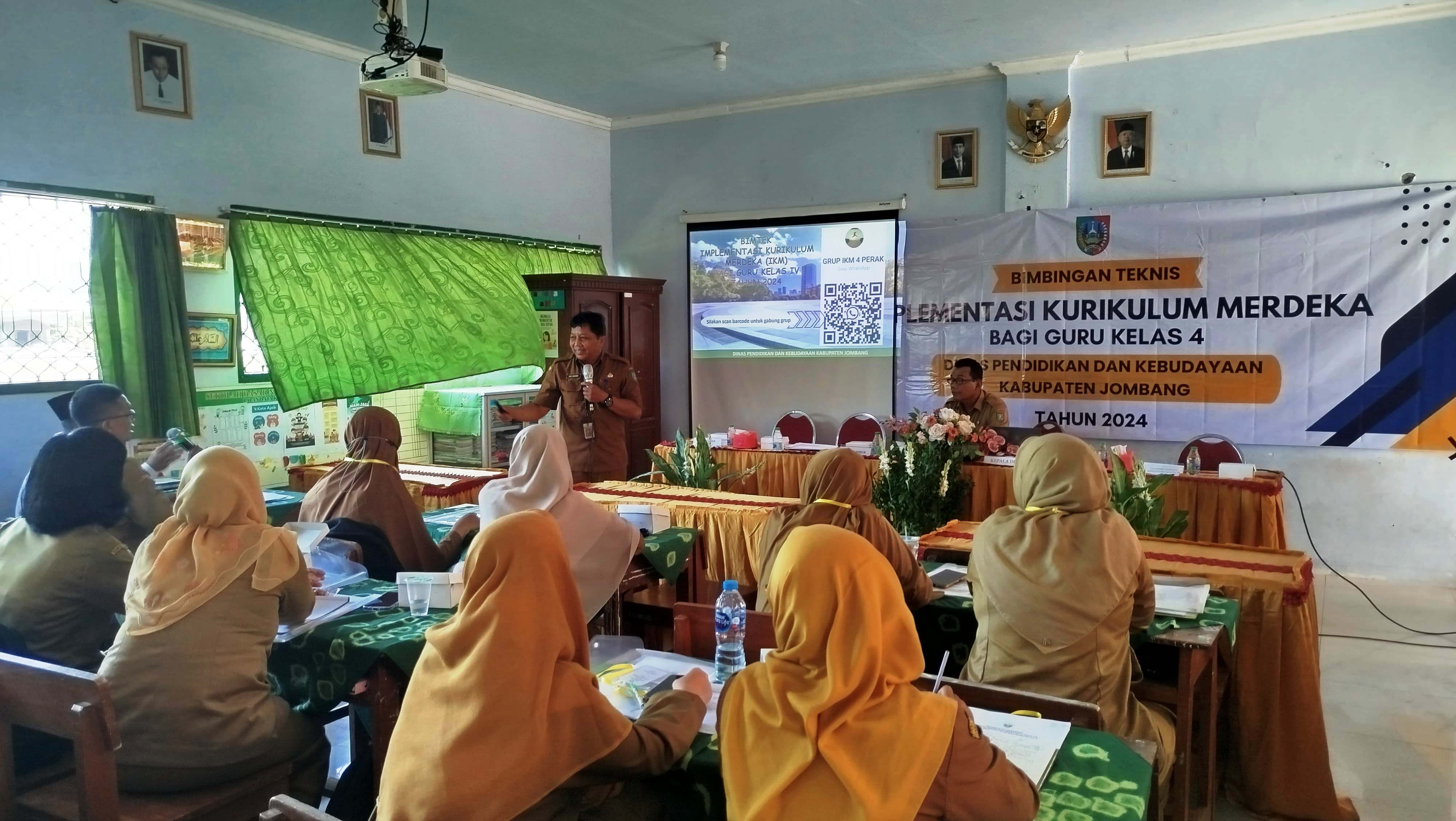DISDIKBUD - Dinas Pendidikan dan Kebudayaan (Disdikbud) Kabupaten Jombang menggelar Bimbingan Teknis (Bimtek) Implementasi Kurikulum Merdeka Bagi Guru Guru Kelas 4 Sekolah Dasar (SD). Bimtek ini dilaksanakan di 4 lokasi, yakni SDN Perak 2, SDN Rejoagung Ploso, SDN Dukuhklopo Peterongan dan SDN Mojowarno 1, yang dijadwalkan selama 6 hari mulai tanggal 26 sampai 29 Agustus 2024.