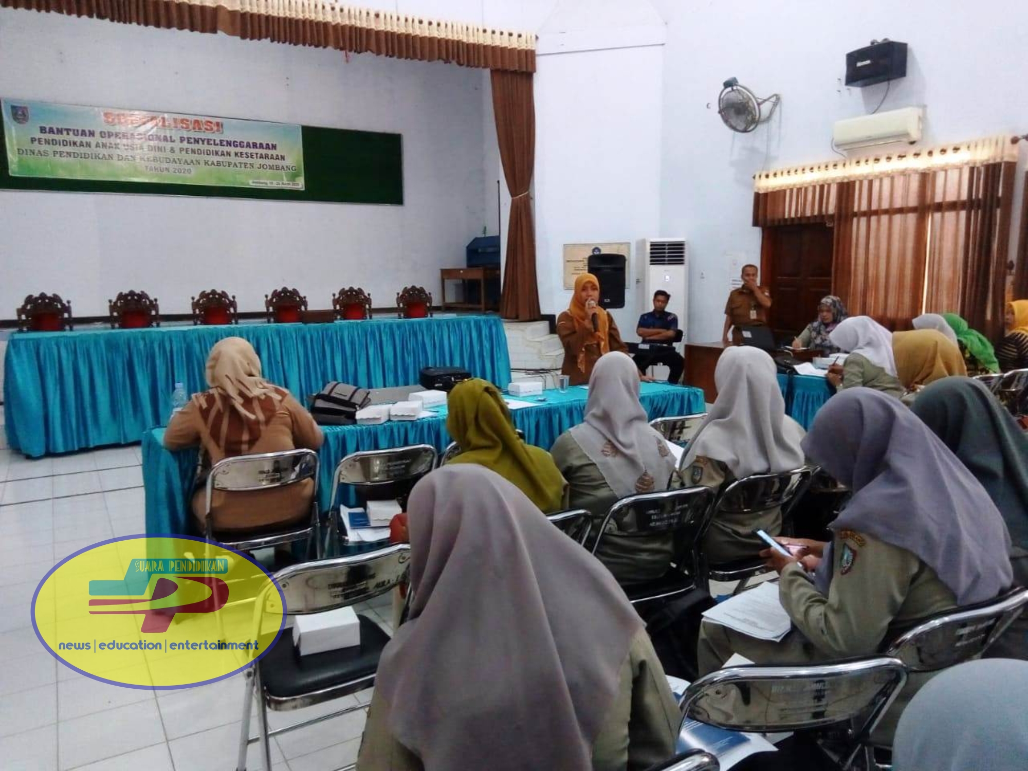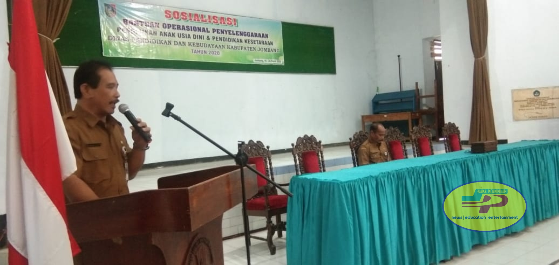 JOMBANGKAB.GO.ID, DISDIKBUD - Dinas Pendidikan dan Kebudayaan Kabupaten Jombang melalui Bidang Pembinaan PAUD dan Pendidikan Non Formal (PNF) menggelar Sosialisasi Bantuan Operasional Penyelenggaraan (BOP) Pendidikan Anak Usia Dini (PAUD) dan Pendidikan Kesetaraan pada Senin (16/3) pagi di Aula 1 Disdikbud Jombang. Sosialisasi dibuka oleh Kepala Bidang PAUD dan PNF, Bambang Rudy Tjahjo didampingi Kepala Seksi Peserta Didik dan Pembangunan Karakter, Hari Supriadi. Disdikbud Jombang tidak ada unsur mempersulit dalam memberi BOP PAUD dan Pendidikan Kesetaraan.