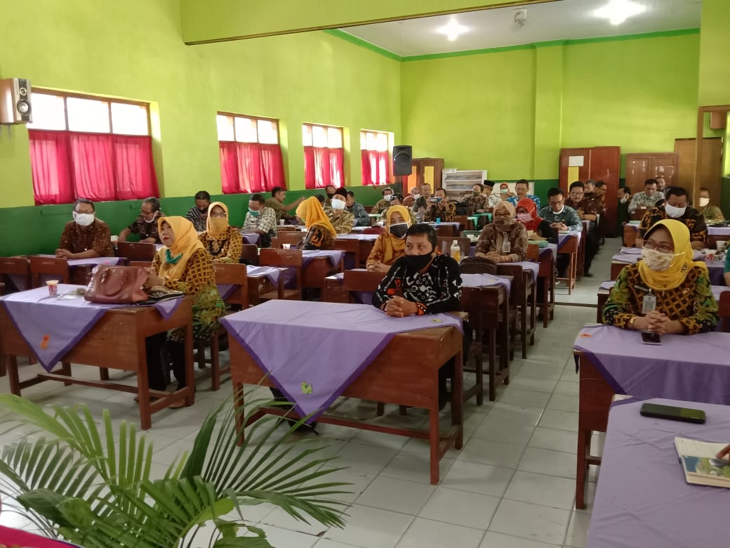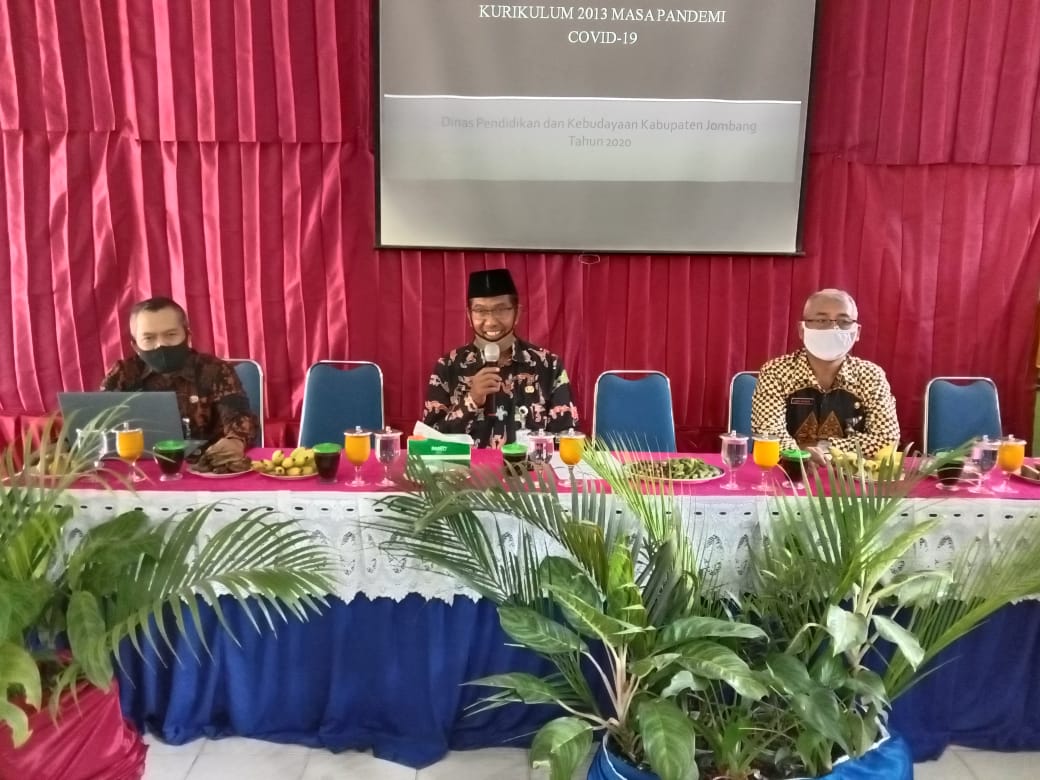 Jumadi, Sekretaris Disdikbud Jombang membuka acara tersebut sekaligus memberi pemaparan tentang Kebijakan Disdikbud Jombang tentang Pembelajaran di Masa Pandemi Covid-19. Hadir pula Kasmujiraharja. Kepala Seksi Kurikulum dan Penilaian SD Disdikbud Jombang. Jojo sapaan akrabnya mengatakan, saat pandemi Covid-19 subtansi kurikulum kita laksanakan tetapi bobot nya kita kurangi. Kompetensi Dasar (KD) dituntaskan, tetapi indikator-indikator kita pilih yang essential saja. Sistim pembelajaran bisa menggunakan dalam jaringan atau luar jaringan tergantung kondisi sekolah masing-masing serta tetap memperhatikan protokol kesehatan.