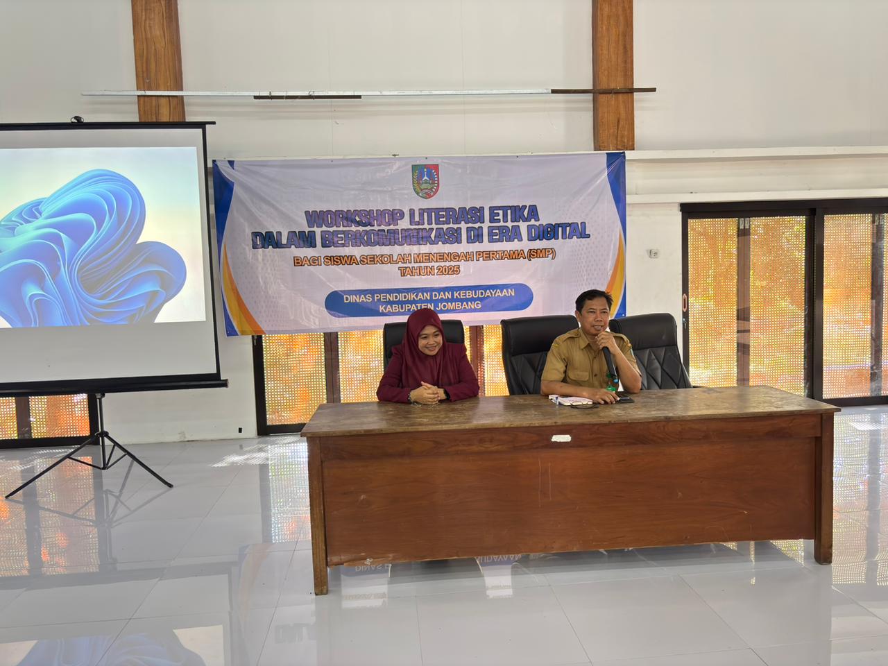 Dalam rangka meningkatkan kemampuan peserta didik dalam berkomunikasi secara bijak dan bertanggung jawab di era digital, Dinas Pendidikan dan Kebudayaan Kabupaten Jombang menyelenggarakan Workshop “Literasi Etika dalam Berkomunikasi di Era Digital”. Kegiatan ini berlangsung selama dua hari, Senin-Selasa (8/9), bertempat di Dinas Pendidikan dan Kebudayaan Kabupaten Jombang.