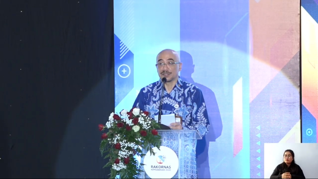 Rakornas dibuka oleh Wakil Presiden RI sekaligus penyampaian Kebijakan dan Penerapan Digitalisasi Manajemen ASN di Era Tatanan Kerja Baru.