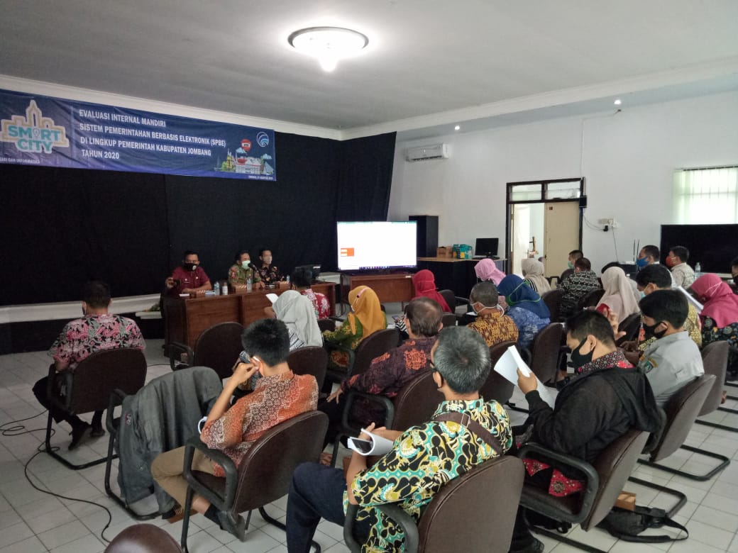 JOMBANGKAB.GO.ID, DISDIKBUD - Pemerintah Kabupaten Jombang mengevaluasi Sistem Pemerintahan Berbasis Elektronik (SPBE) yang telah dinilai oleh Kementerian Pemberdayaan Aparatur Negara dan Reformasi Birokrasi. Evaluasi Mandiri ini dikemas dalam Rapat Evaluasi Internal SPBE Tahun 2020. Dinas Pendidikan dan Kebudayaan (Disdikbud) Kabupaten Jombang hadir dalam rapat tersebut yang dilaksanakan pada hari Kamis pagi (27/8) di Aula Dinas Komunikasi dan Informatika (Diskominfo) Kabupaten Jombang.