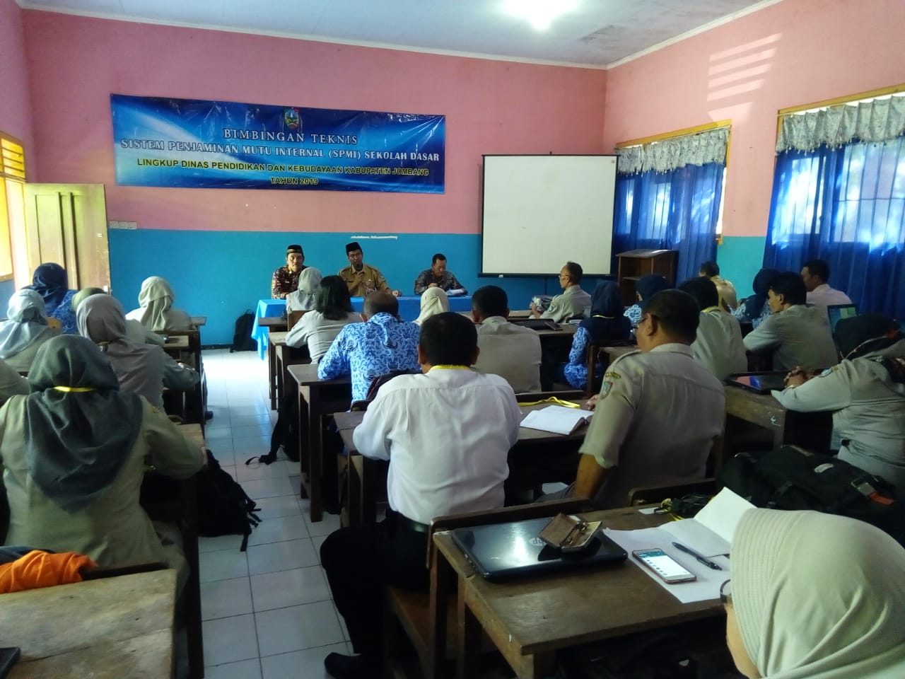 JOMBANGKAB.GO.ID, DISDIKBUD - Untuk mengimplementasikan Permendikbud Nomor 28 Tahun 2016 tentang Sistem Penjaminan Mutu Internal (SPMI) Pendidikan Dasar dan Menengah, Dinas Pendidikan dan Kebudayaan (Disdikbud) Kabupaten Jombang menggelar Bimbingan Teknis SPMI Sekolah Dasar (SD). Karena banyaknya kegiatan dan keterbatasan tempat di Disdikbud Kab. Jombang, bimtek dilaksanakan di SMP Sawunggaling dan SDN Pandanwangi Diwek (11/11) di SMP Sawunggaling yang dibuka oleh Sekretaris Disdikbud Jombang, Jumadi, S.Pd., M.Si.