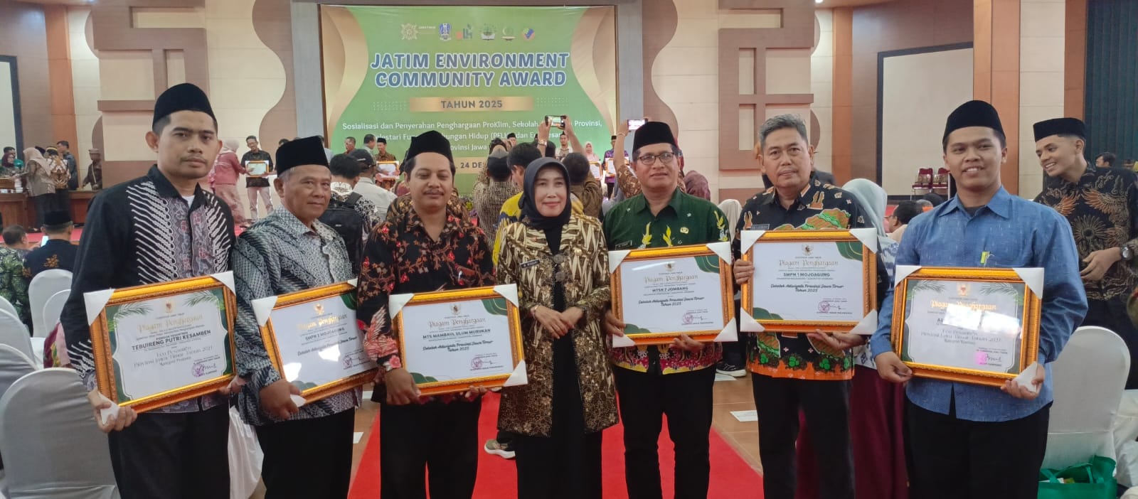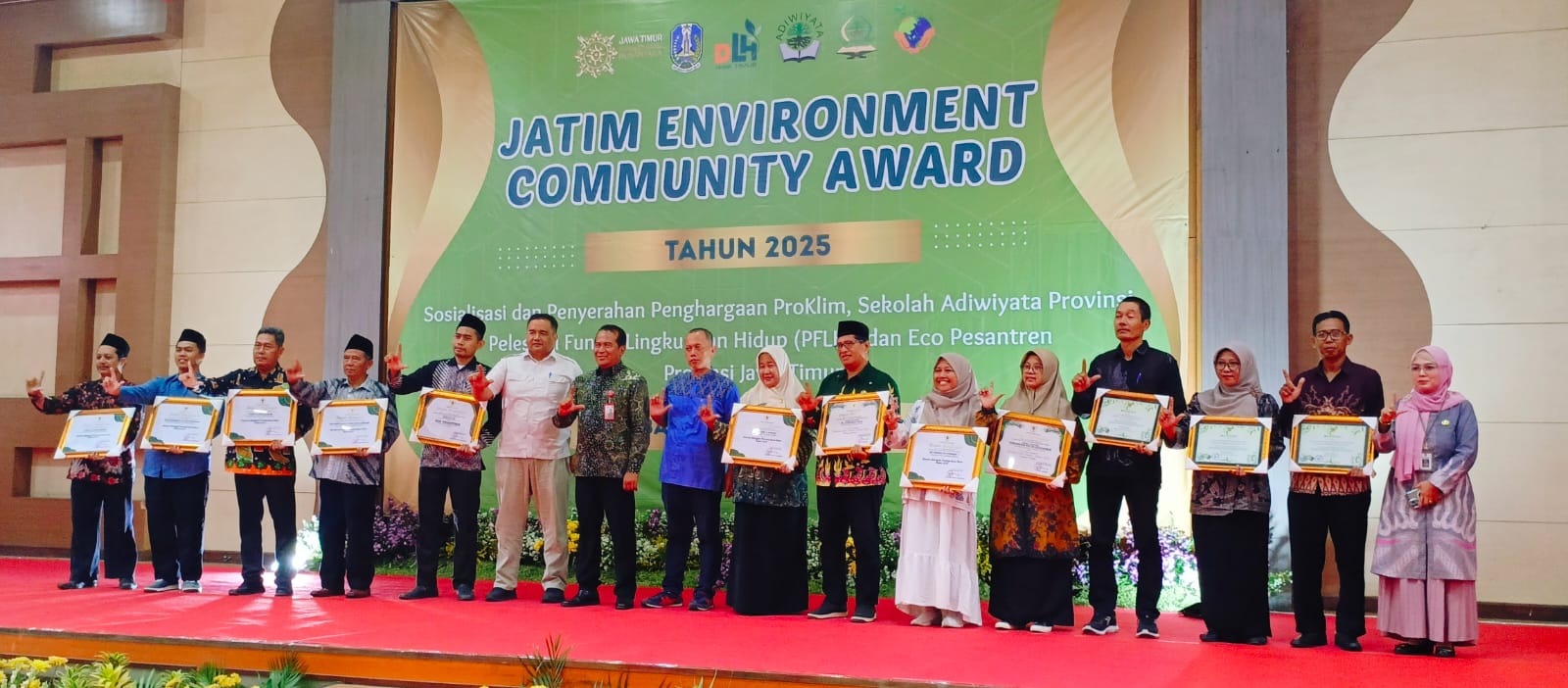 Prestasi membanggakan kembali ditorehkan dunia pendidikan Kabupaten Jombang. Empat satuan pendidikan berhasil meraih Penghargaan Sekolah Adiwiyata Provinsi Jawa Timur Tahun 2025, yang diserahkan oleh Dinas Lingkungan Hidup Provinsi Jawa Timur pada Rabu (24/12) di Gedung Graha Wisata Surabaya, Dinas Pariwisata Provinsi Jawa Timur.