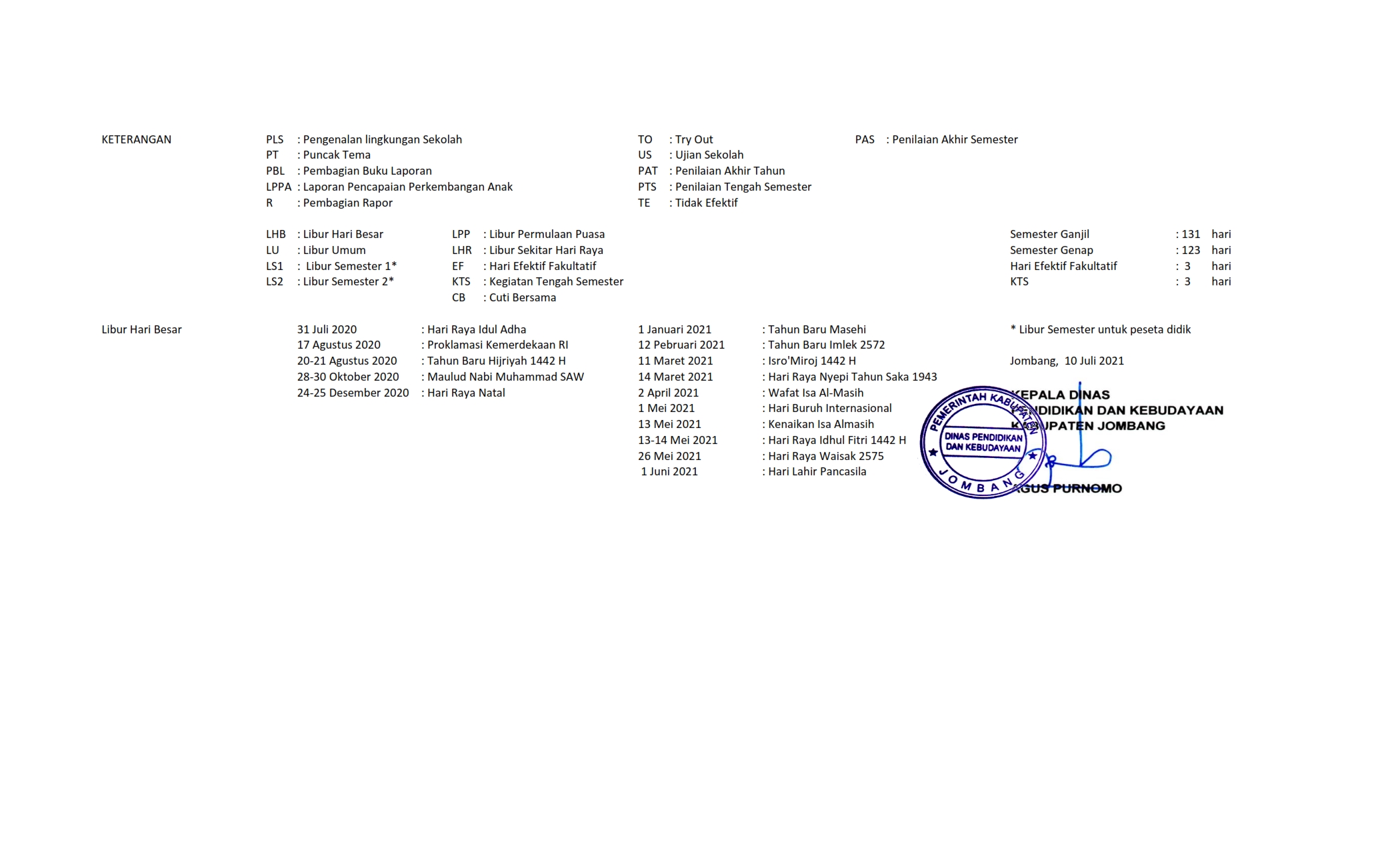 JOMBANGKAB.GO.ID, DISDIKBUD - Mengingat ada kekeliruan dalam susunan, maka Keputusan Kepala Dinas Pendidikan dan Kebudayaan Nomor 188.4/2590/415.16/2020 tanggal 30 Juni 2020 tentang Hari efektif, hari efektif fakultatif, dan hari libur bagi satuan pendidikan di Kabupaten Jombang Tahun Pelajaran 2020/2021 DICABUT dan dinyatakan tidak berlaku.