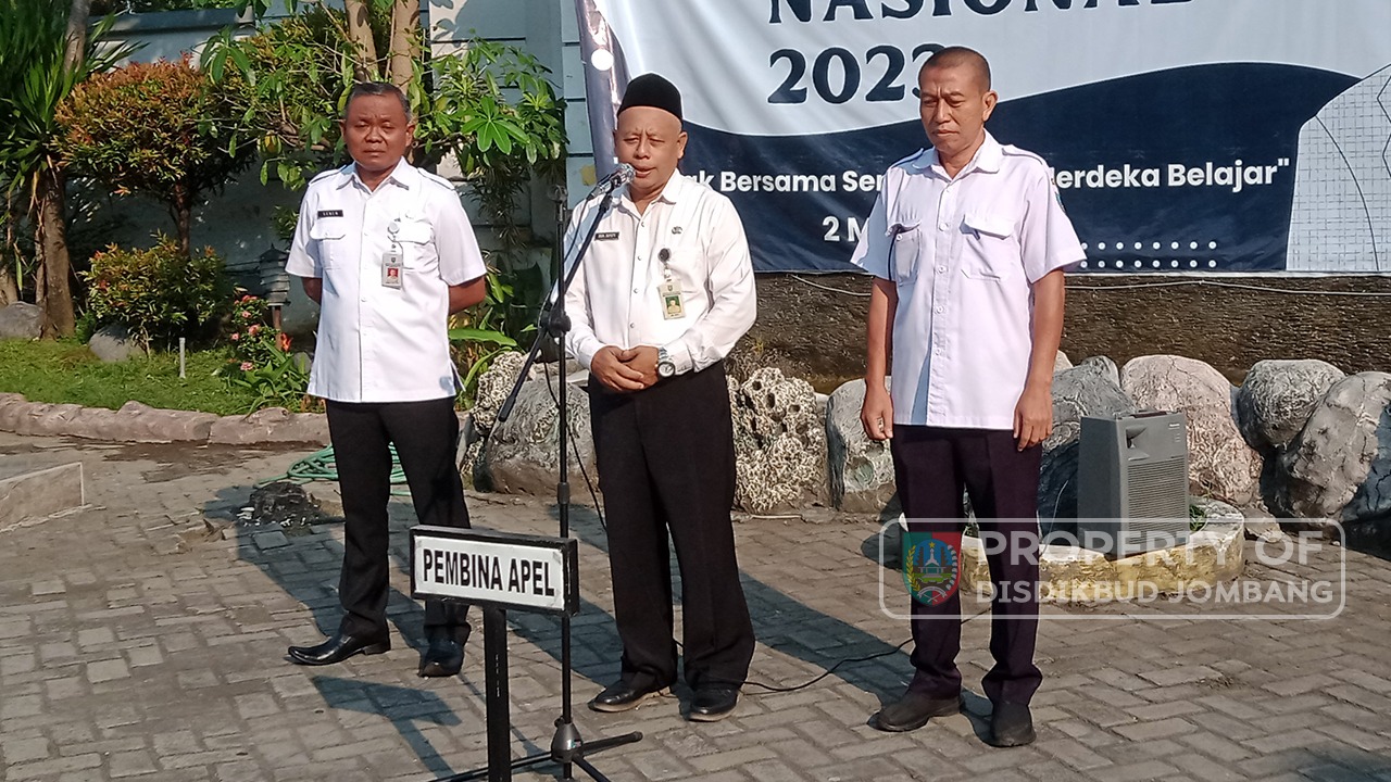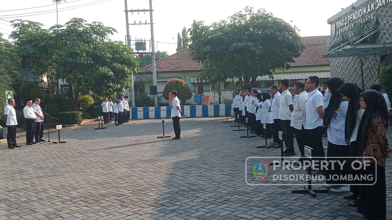 DISDIKBUD - Apel kerja hari ini (31/5) merupakan panggilan kerja terakhir bagi pegawai yang memasuki masa pensiun (purna tugas) per 1 Juni 2023. Apel kerja pagi ini langsung dipimpin Kepala Dinas Pendidikan dan Kebudayaan (Disdikbud) Jombang Senen.