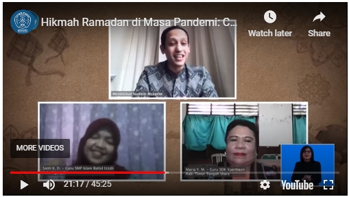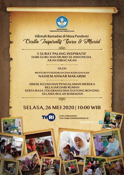 Kesan dan pengalaman mereka selama menjalani masa belajar dari rumah, serta rasa toleransi dan gotong royong selama bulan Ramadan, akan disiarkan langsung di TVRI Nasional dan akun Youtube KEMENDIKBUD RI, pada Selasa, 26 Mei 2020, pukul 10.00 WIB. (NR)