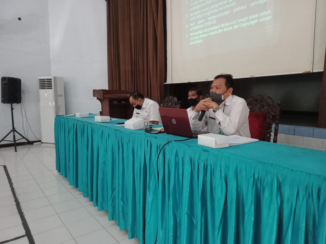Menanggapi hal tersebut Dinas Pendidikan dan Kebudayaan (Disdikbud) Kabupaten Jombang mengawali kegiatan dengan menggelar Rapat Persiapan Pembelajaran Tatap Muka pada hari Rabu pagi (12/8) di Aula 1 Disdikbud Jombang. Peserta rapat lengkap dari unsur PAUD sampai SMP. Mulai dari Pengurus Musyawarah Kerja Kepala Sekolah (MKKS), Penilik dan Pengawas Sekolah, Kepala Seksi Kurikulum dan Penilaian serta Kepala Bidang lingkup Disdikbud Jombang.