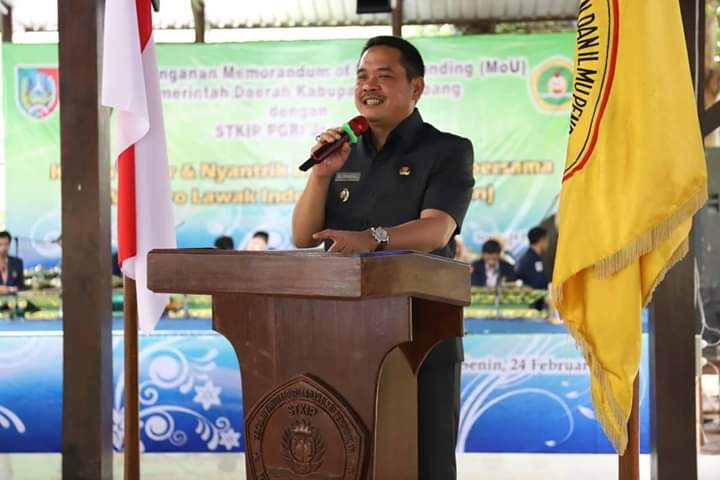 JOMBANGKAB.GO.ID, DISDIKBUD - Wakil Bupati Jombang Sumrambah saat menghadiri penyerahan MoU dengan STKIP PGRI Jombang di Gazebo Utama kampus tersebut pada Senin(24/020) menyampaikan, bahwa di era milenial ini semua sudah serba canggih baik dalam hal industri maupun tataran kehidupan manusia lainnya. Banyak hal yang sifatnya tradisional menjadi barang langka dan mahal. Namun dibalik ketradisionalan tersebut menyimpan sebuah potensi yang besar bila dikelola dengan baik dan benar.