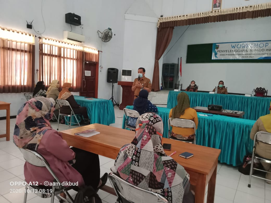 JOMBANGKAB, DIKBUD - Dinas Pendidikan dan Kebudayaan (Disdikbud) Kabupaten Jombang melalui Bidang Pembinaan Pendidikan Anak Usia Dini (PAUD) dan Pendidikan Non Formal (PNF), menggelar Workshop Penyelenggaraan PAUD Inklusif selama 2 hari (12-13/9/2020) di Aula 1 Disdikbud Jombang.