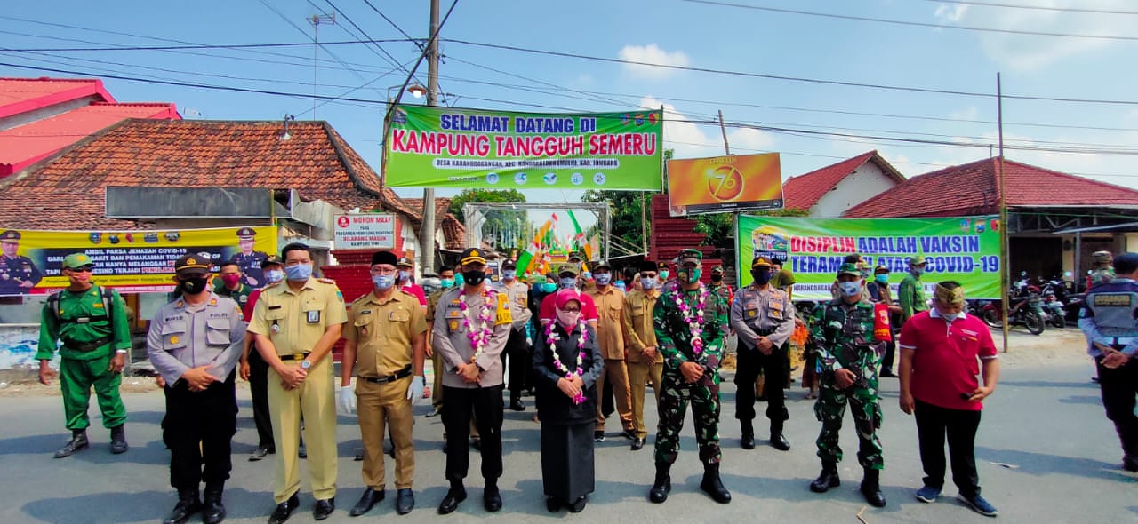JOMBANGKAB.GO.ID, DISDIKBUD - Kampung Tangguh merupakan satuan tugas yang terdiri dari Pemerintah Daerah, POLRI dan TNI. Semua Desa di Kabupaten Jombang akan dijadikan Kampung Tangguh. Desa Karangdagangan Kecamatan Bandarkedungmulyo resmi dijadikan kampung tangguh pada hari Senin (29/6). Hadir Bupati Jombang, Kapolres Jombang, Dandim 0814 Jombang dan beberapa Pejabat Pemkab Jombang.