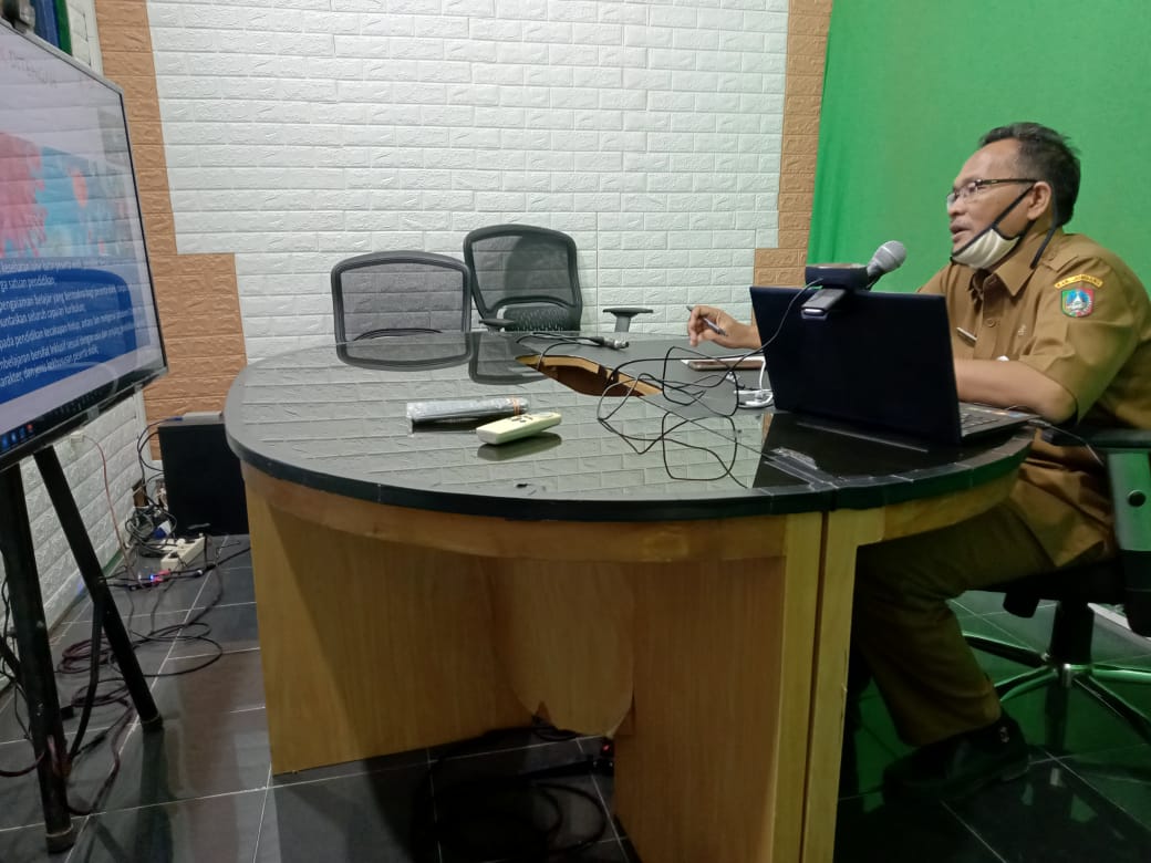 JOMBANGKAB.GO.ID, DISDIKBUD - Pengawas Sekolah merupakan Pejabat Fungsional Dinas Pendidikan dan Kebudayaan (Disdikbud) Kabupaten Jombang. Perannya sangat penting dalam pembinaan sekolah-sekolah. Meskipun di Masa Pandemi Covid-19 ini, semangatnya tidak surut untuk membina sekolah. Salah satu Pengawas Sekolah Menengah Pertama (SMP) Disdikbud Jombang, Ahmad Taufik mengadakan pembinaan dalam jaringan (daring) ke 10 Sekolah Binaannya di Studio SPTV, Senin siang (22/6).