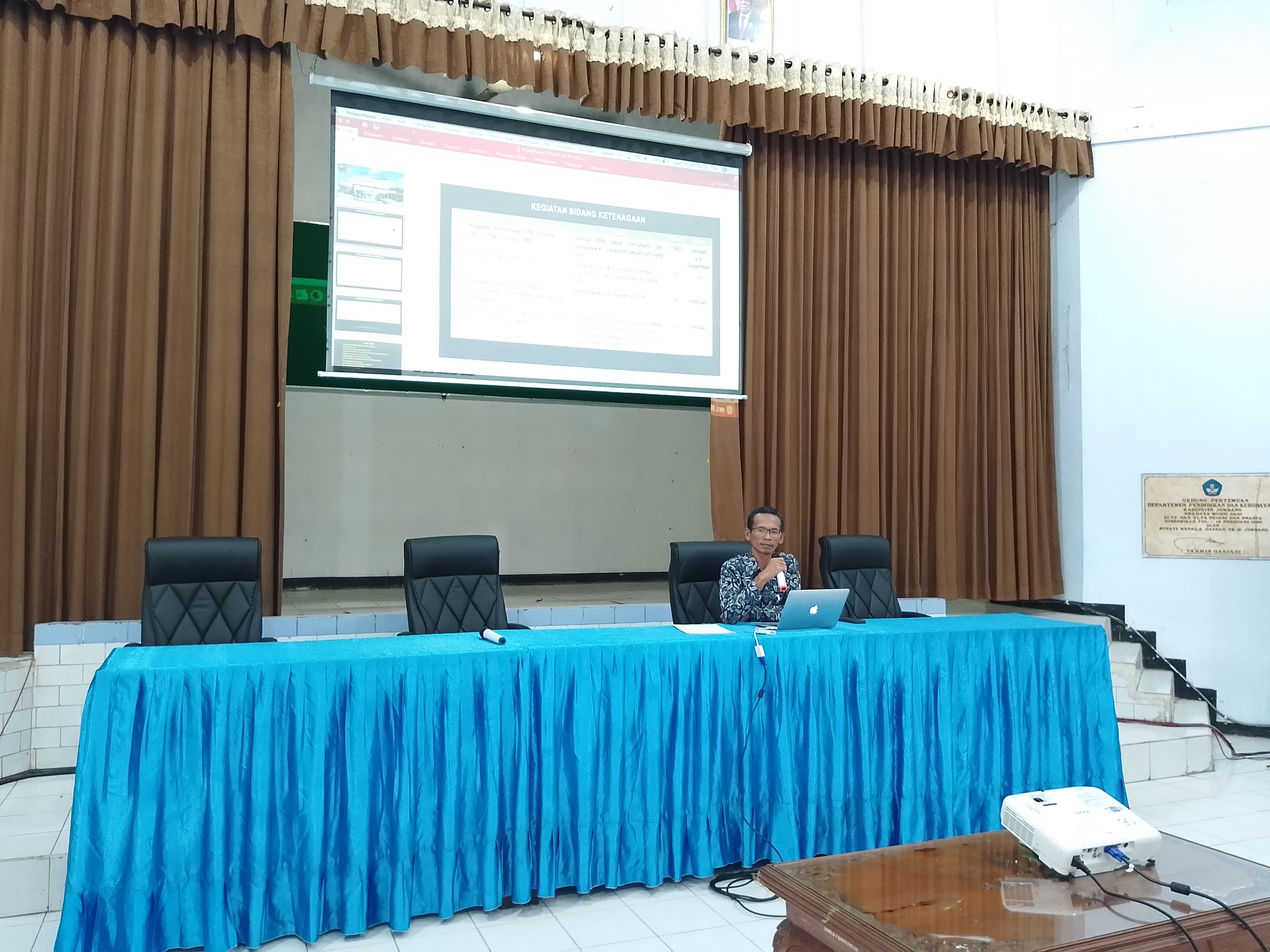 Abdul Majid memaparkan 3 poin penting yakni, Kegiatan Bidang Pembinaan Ketenagaan, Kegiatan dan Jumlah Anggaran Bidang Ketenagaan, dan Progres Kegiatan Bidang Pembinaan Ketenagaan.