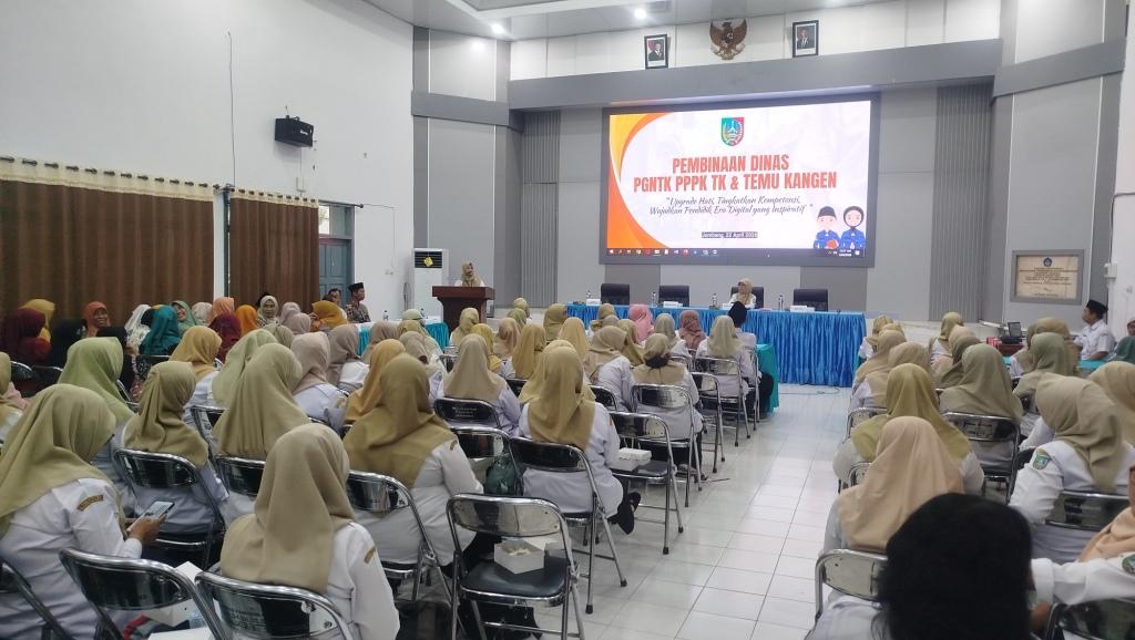 DISDIKBUD - Kegiatan pembinaan dinas bagi anggota Persatuan Guru Negeri Taman Kanak-kanak (PGNTK) dan Pegawai Pemerintah dengan Perjanjian Kerja (PPPK) Kabupaten Jombang berlangsung khidmat pada Rabu (22/4/2026). Acara yang digelar di Aula 1 Dinas Pendidikan dan Kebudayaan (Disdikbud) Kabupaten Jombang ini dihadiri ratusan peserta yang tampak antusias mengikuti seluruh rangkaian kegiatan.