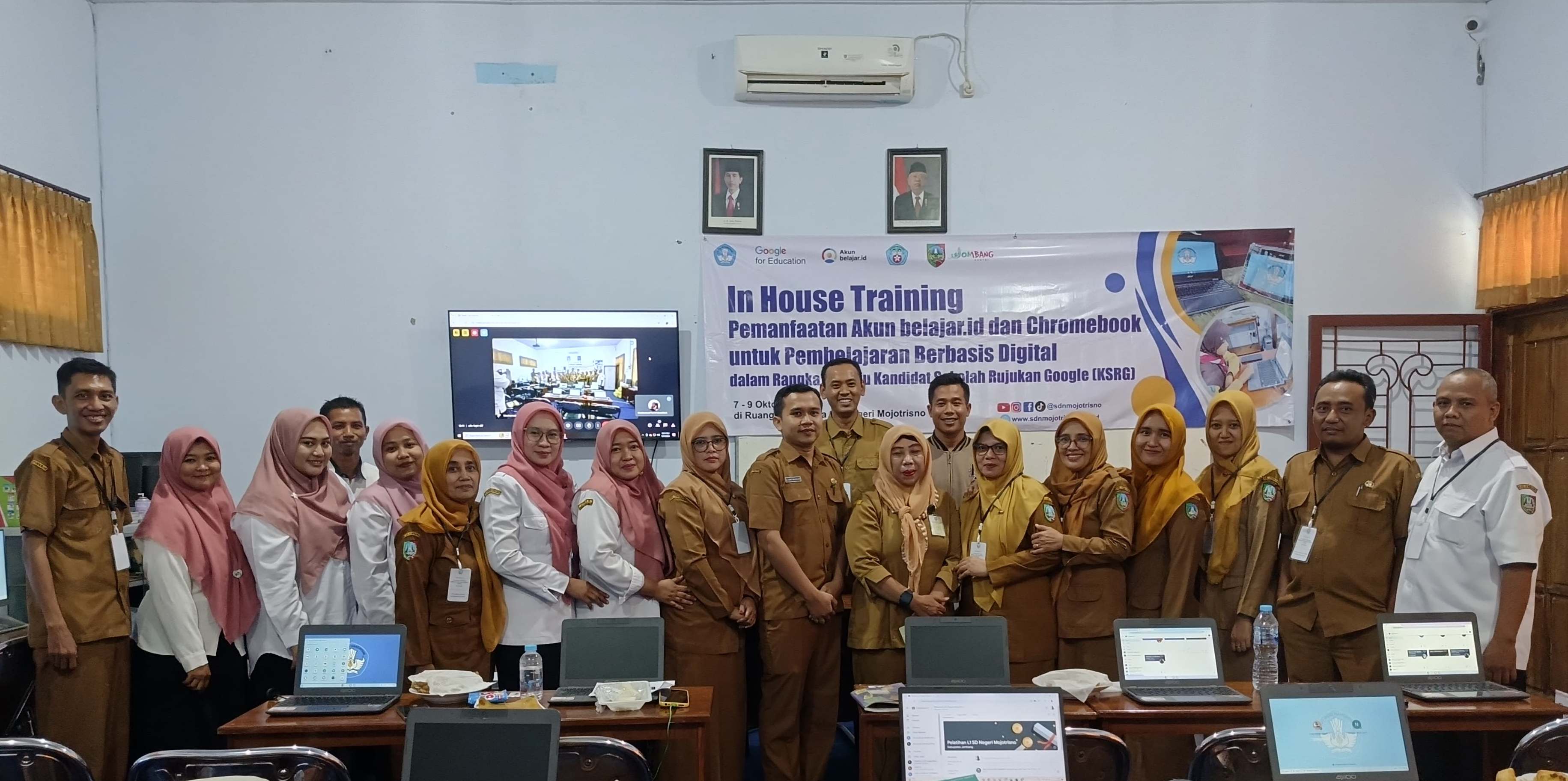DISDIKBUD – SD Negeri Mojotrisno, sebuah sekolah dasar yang berlokasi di Kecamatan Mojoagung Kabupaten Jombang, berhasil meraih prestasi luar biasa dengan terpilih sebagai Kandidat Sekolah Rujukan Google (KSRG) pertama dan masih satu-satunya di Kabupaten Jombang. Berbagai tahapan seleksi mulai dari pelatihan L0 (Level Zero) secara daring selama 1 bulan dan persiapan L1 (Level 1) secara luring selama 3 hari bersama trainer tersertifikasi google. Dilanjut dengan ujian sertifikasi pendidik google level 1 dan alhamdulillah dapat lulus 100%. Pencapaian ini merupakan bukti nyata dari komitmen sekolah dalam mengadopsi teknologi digital untuk meningkatkan kualitas pembelajaran.